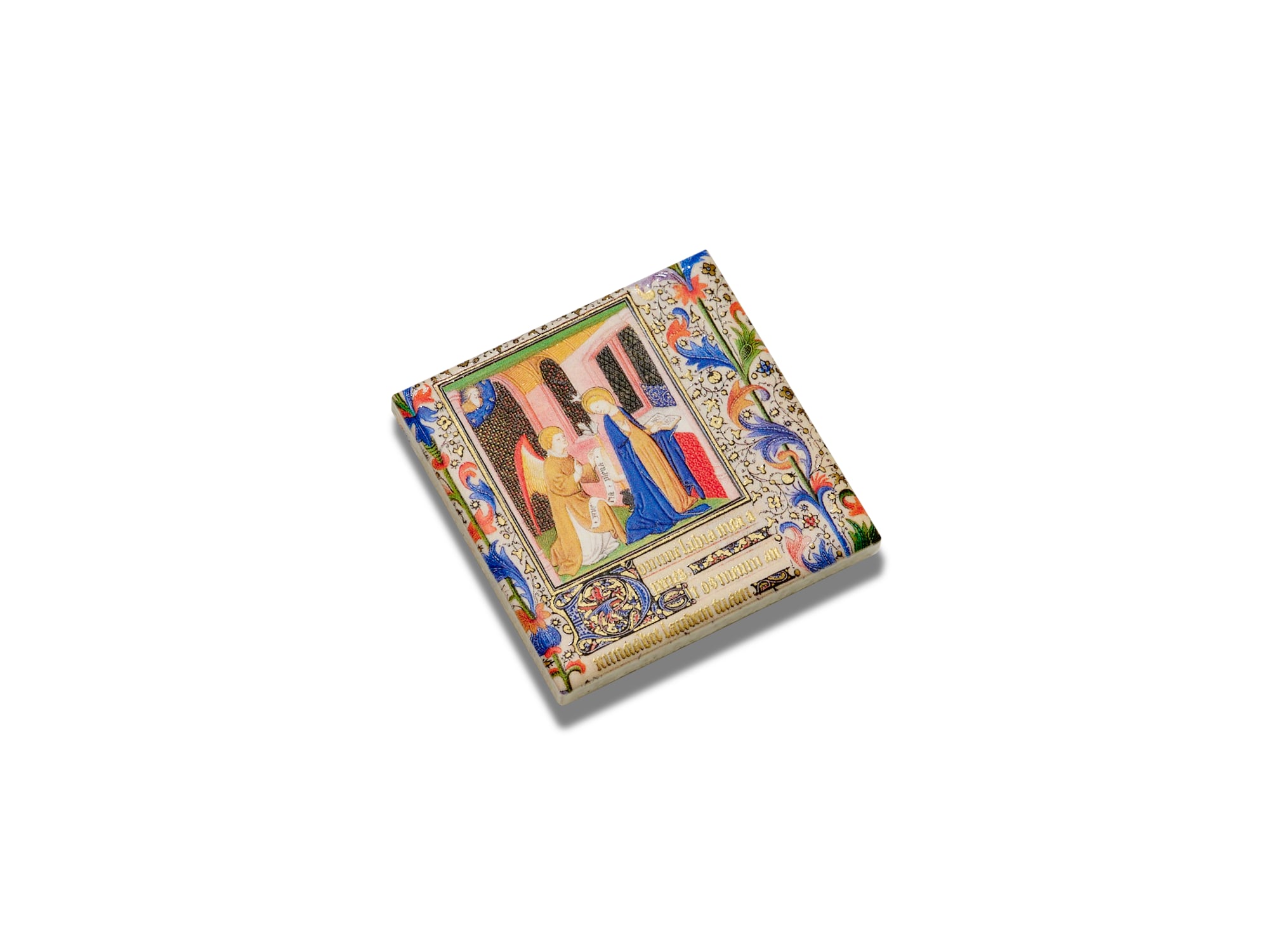 「受胎告知」は、大天使ガブリエルが聖母マリアに、救世主の誕生を告げる神秘的な場面が描かれています。金色に輝く天使の羽根や、象徴的な百合の花、マリアの静謐な表情を、微細な凹凸を加えることで立体的に再現しました。背景の華やかな装飾模様にも起伏をつけることで奥行きを表現しています。指先で触れるたびにあたたかな祈りが広がり、小さなアートピースとしてお楽しみいただけるマグネットです。