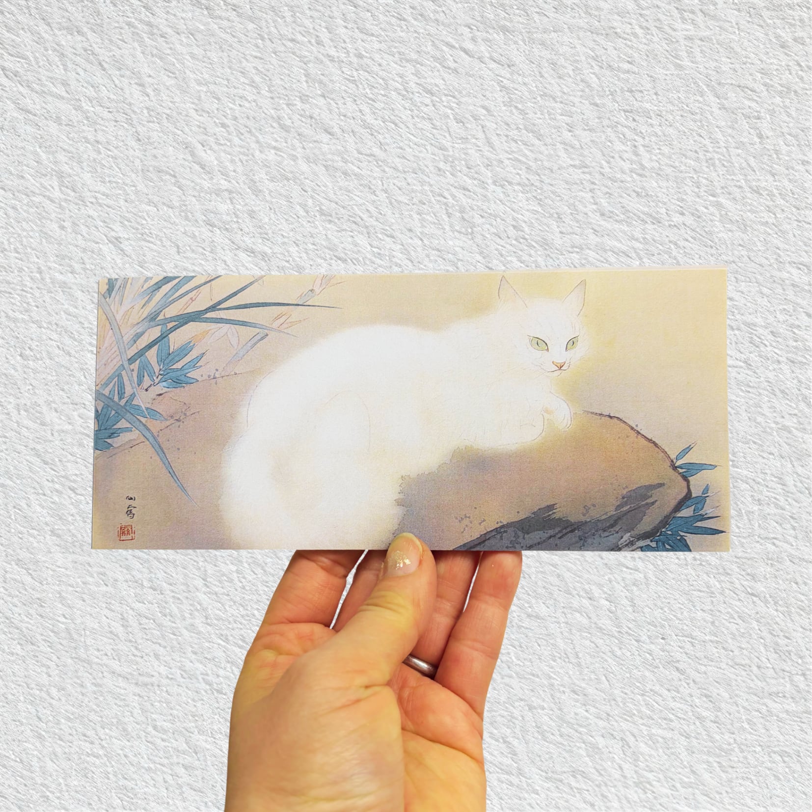 ふんわりとした毛並みの白猫が描かれた中面は、