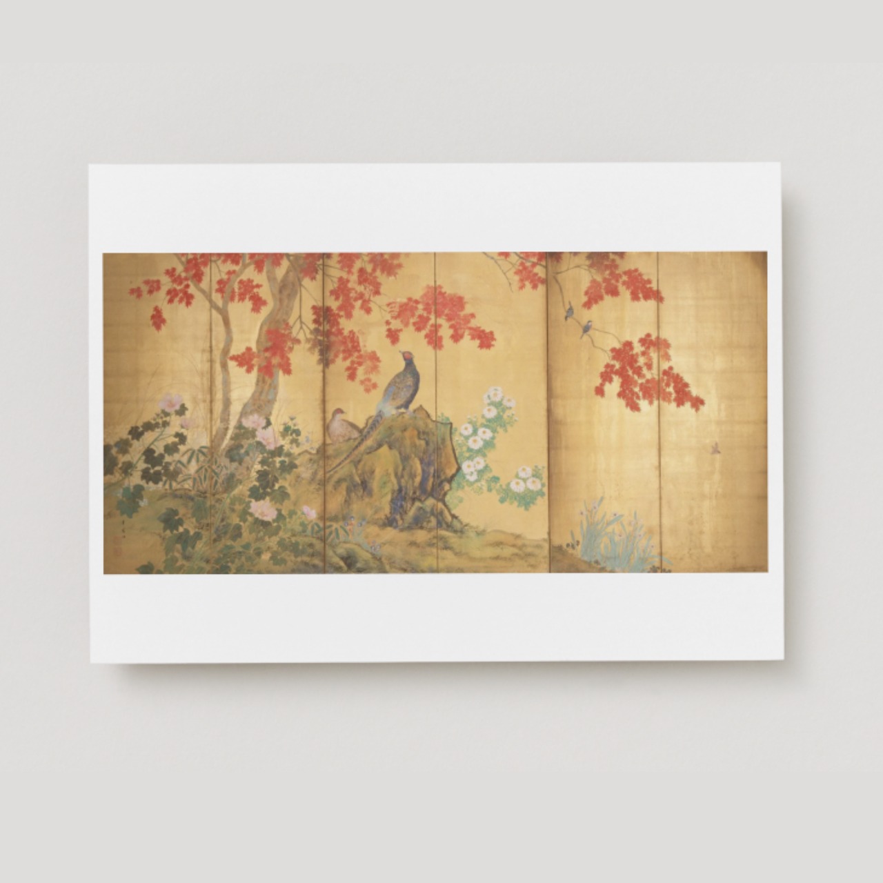 古川美術館所蔵 朝見香城「四季花鳥図」左隻 のポストカードです。