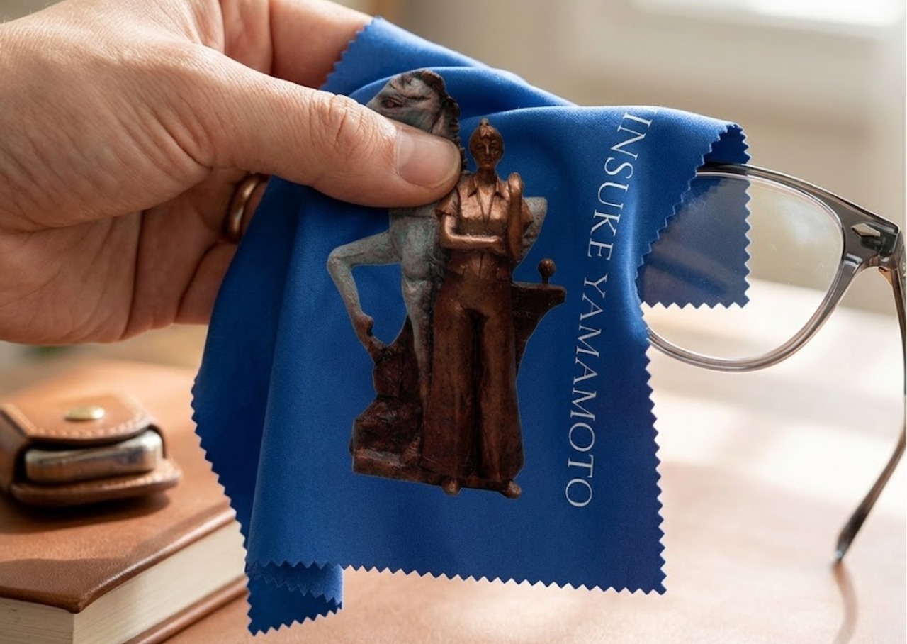 日本芸術院会員・彫刻家の山本眞輔氏による名作「心の旅ー古都幻想ー」をデザインした、特別仕様のマイクロファイバークロス