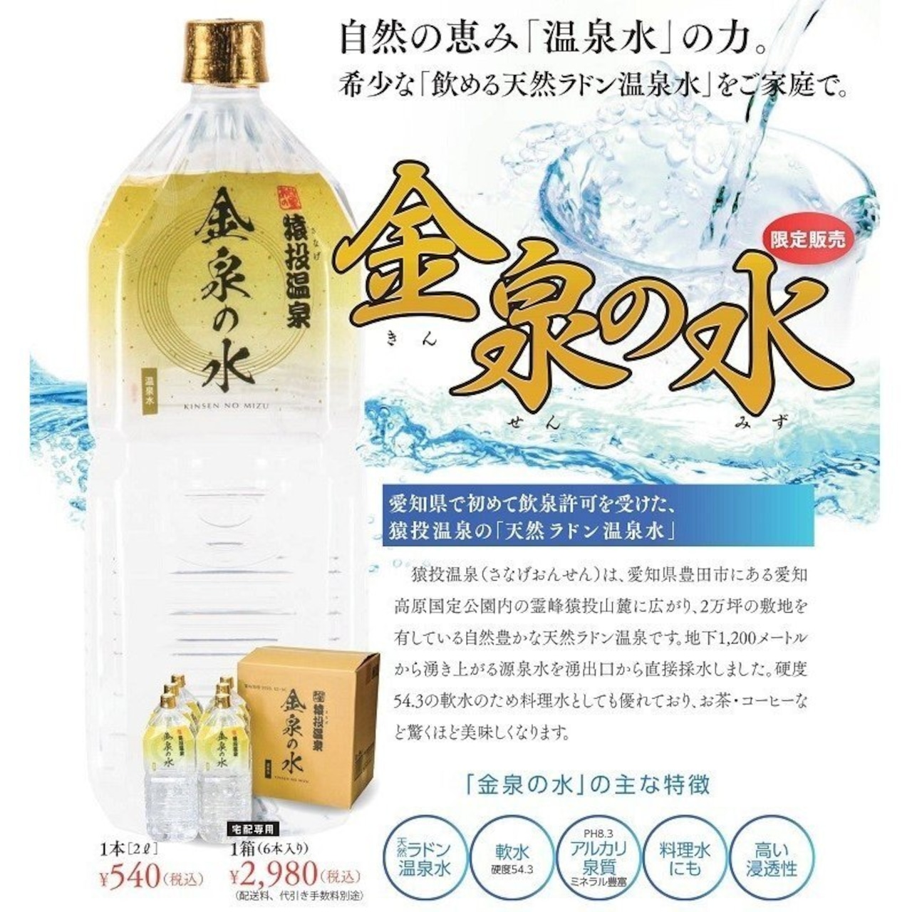 猿投温泉の源泉水「金泉の水」500ml